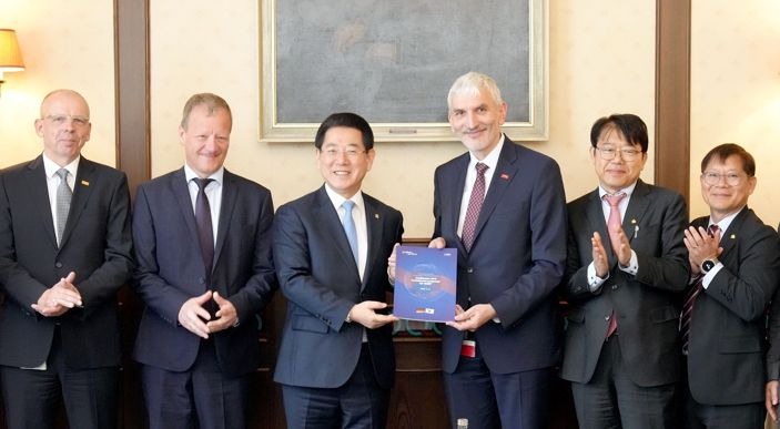 [제주교통복지신문 김강석 기자] 유럽을 순방 중인 김영록 전라남도지사는 3일(현지 시간) 독일 프랑크푸르트에서 린데, ㈜한양 등과 함께 8억 달러(한화 1조 원) 규모의 블루수소 생산 클러스터 조성 투자협약을 했다.