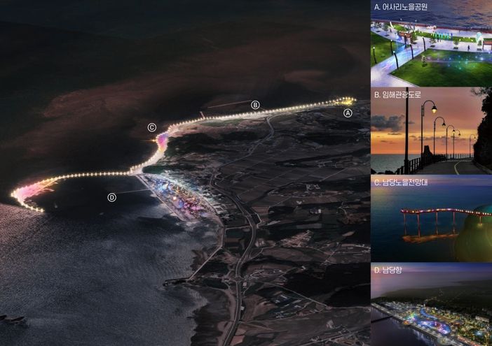 군은 지난해 2023년도 관광자원개발사업 공모에 ‘서부해안 야간경관 명소 조성사업’이 선정돼 사업비 50억을 확보하고, 서부면 남당항 해양공원을 중심으로 임해관광도로, 노을전망대, 어사리노을공원 등 약 3km 구간을 빛의 테마로 잇는 야간 이벤트 경관시설을 조성한다고 밝혔다.