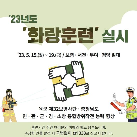 군 관계자는 “훈련기간 동안 군 병력과 장비 이동 등 훈련상황에 주민들의 이해와 협조를 부탁드린다”라며 “낯선 사람이나 거동 수상자를 보는 주민은 국번 없이 1338로 신고 바란다”라고 당부했다.