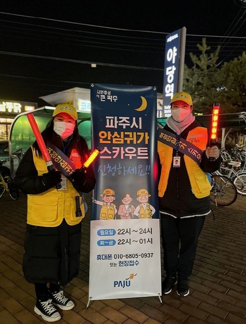 [제주교통복지신문 김강석 기자] 파주시는 2023년 2월부터 늦은 밤 귀가하는 여성과 청소년들의 안전을 위해 야당역 인근에서 ‘여성안심귀가 스카우트’ 사업을 시행하고 있다.