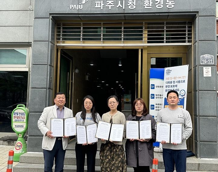 [제주교통복지신문 김강석 기자] 파주시는 2일 시청 내 및 주변 카페 8개소와 '다회용컵 순환 사업를 통한 일회용품 줄이기 업무 협약식'을 가졌다.