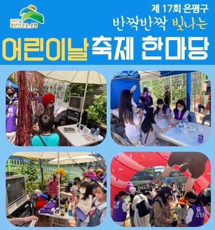 ‘제17회 은평구 어린이날 축제 한마당’을 증산초등학교 운동장에서 13일 오전 10시부터 오후 3시까지 개최한다. 은평구 어린이와 주민 누구나 참여할 수 있는 축제다. 5월 5일 어린이날 개최 예정이었으나 비 예보에 따라 13일로 개최일이 연기됐다.