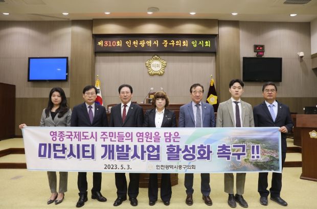 이에 중구의회는 “인천경제자유구역청과 인천도시공사, 그리고 우리 중구청은 긴밀한 협력을 통한 확고한 개발 의지로, 실현 가능한 미단시티의 개발 추진이 필요하며 영종국제도시 주민들의 오랜 염원인 미단시티 개발이 조속히 실현될 수 있도록 촉구한다.”는 입장을 대외적으로 표명했다.