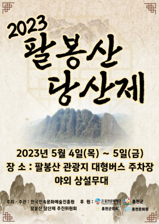 [제주교통복지신문 김강석 기자] 홍천군은 한국민속문화예술진흥원와 팔봉산당산제 추진위원회이 주최주관하고 (재)홍천문화재단과 홍천군, 홍천군의회, 홍천문화원이 후원하는 팔봉산당산제가 4년만에 열린다고 밝혔다.