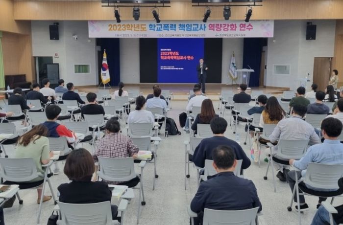 [제주교통복지신문 김강석 기자] 경산교육지원청은 5월 3일 학생교육지원관 2강당에서 초, 중, 고등학교, 특수학교, 각종학교 학교폭력책임교사 61명을 대상으로 현장 중심 학교폭력 예방 대책과 학교폭력 사안 처리 대응 능력을 강화하기 위한 책임교사 연수를 실시했다.