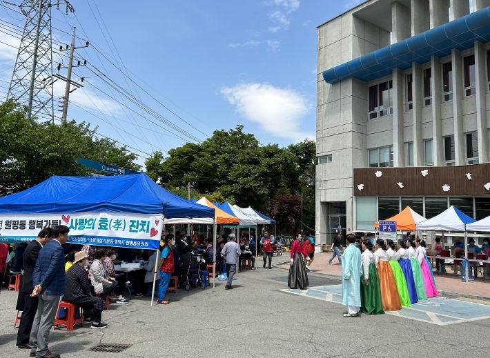 이날 행사는 원평동 통장협의회와 바르게살기위원회의 공동 주최로 개최됐으며, 어르신들은 정성스레 준비한 음식을 드시면서 주민자치프로그램인 민요와 아랑고고장구의 흥겨운 무대를 관람하며 즐거운 한때를 보냈다.