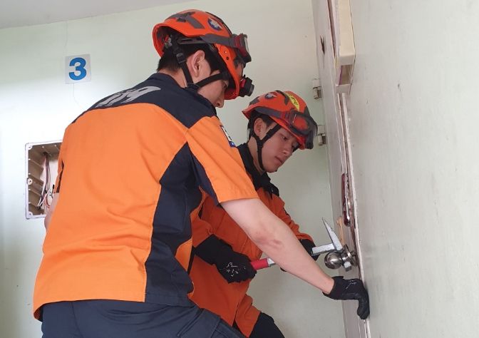 주요 훈련내용은 ▲잠금장치 구조의 이해 ▲2인 1조 개방기구 등을 활용 방화문․방문․화장실문․유리문 개방훈련(비파괴, 파괴) ▲잠금장치 개방 사고사례 및 안전사고 방지 교육 등이다.