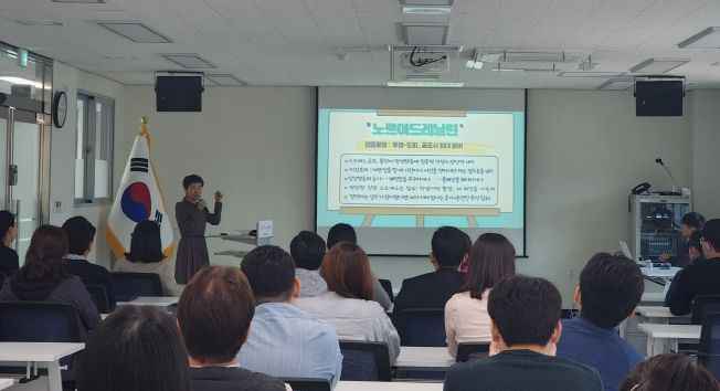 또한 학교지원단 전 직원은 7대 과제 실천 결의문을 낭독하며 차별 없고 수평적인 조직문화 개선, 존중‧공감의 조직문화 조성, 갑질 문화 근절을 위해 노력하기로 다짐했다.