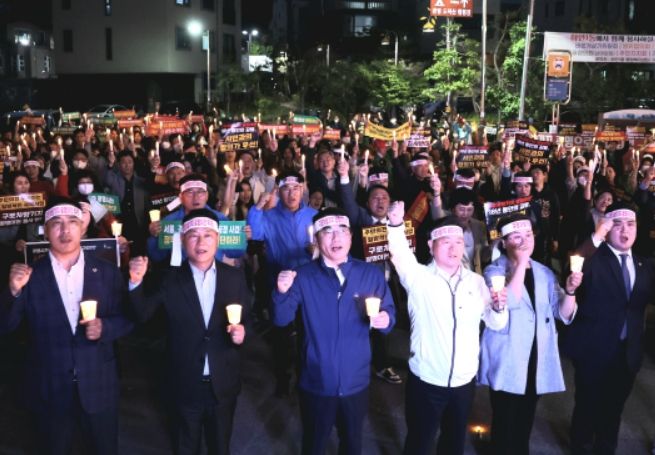 4일 광명시에 따르면 광명시민 300여 명은 3일 오후 6시 30분부터 밤일마을 등 구로차량기지 광명 이전 예정지 일대에서 ‘사업 백지화 염원 촛불 행진’을 벌이고 구로차량기지 광명 이전 거부 목소리를 높였다.