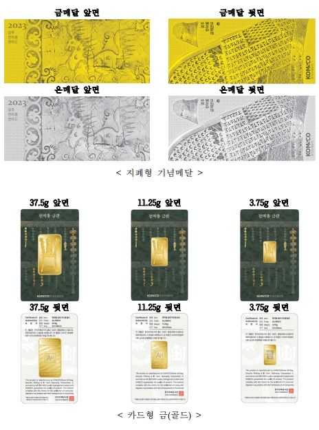 천마총에서 출토된 천마도를 주제로 한 지폐형 기념메달의 경우 앞면에는 천마도, 뒷면에는 금제관모를 선화(선으로 그린 그림)로 그렸으며, 고도화된 금형기술로 천마의 역동적인 모습과 관모의 섬세함을 표현했다. 금메달 200장(20g), 은메달 2,000장(10g)으로 총 2,200장 선착순 한정 판매하며, 하반기에는 금제관모를 주제로 2차 기념메달도 출시할 예정이다.
