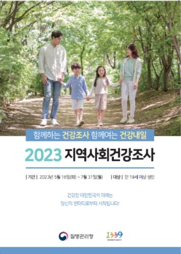 이종규 보건정책과장은 “지역주민의 건강수준 및 위험요인 현황통계를 생산하고 활용하는 국내 유일의 조사인만큼 원활하게 수행될 수 있도록 지역주민의 적극적인 참여와 협조를 부탁드린다”고 당부했다.