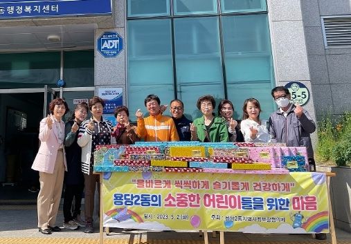 [제주교통복지신문 김강석 기자] 용당2동 지역사회보장협의체가 5월 어린이날을 맞아 관내 저소득 어린이 38명에게 선물을 나누는 자리를 마련했다.