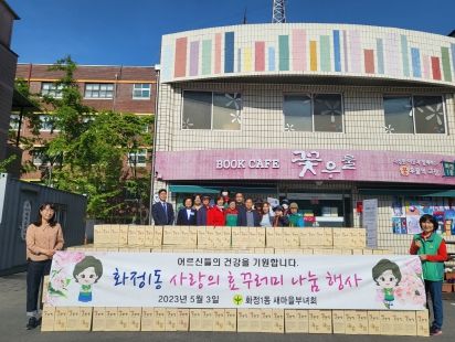 이날 화정1동 새마을부녀회와 통장협의회가 참여하여 어르신 댁에 직접 효(孝)꾸러미를 전달하고 어르신들의 안부도 살피며 뜻깊게 진행됐다.