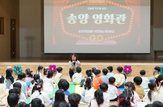 송양유치원은 어린이날 축하 행사로 학부모 선물꾸러미 전달, 포토존 운영, 영화 관람, 찾아오는 원예 체험, 에어바운스 놀이 체험 등을 운영했다.