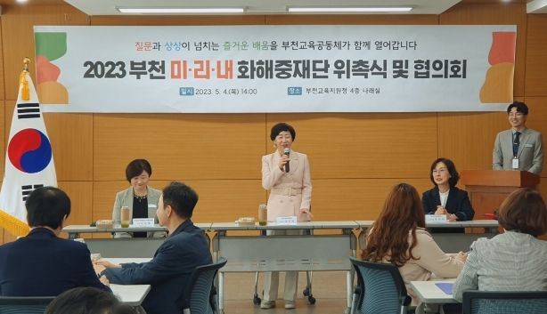 [제주교통복지신문 김강석 기자] 부천교육지원청은 4일 학교 내 갈등 사안의 교육적 해결을 지원하기 위한 ‘미·리·내 화해중재단’을 위촉했다. 미·리·내는 '미안해! 이해해! 내 마음과 네 마음'의 줄임말로 화해중재단 운영의 방향과 취지를 담고 있다.