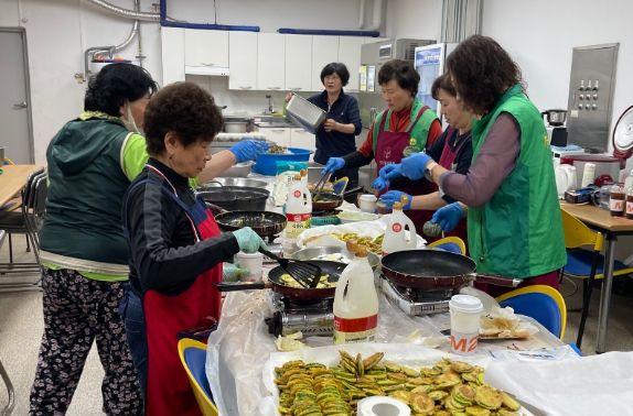 4일 이른 아침 정자2동 행정복지센터에 모인 새마을부녀회 회원들은 미리 준비해둔 식재료로 오전 내내 불고기, 호박전 등 반찬을 만들고, 가구별로 나누어 포장까지 마무리했다.
