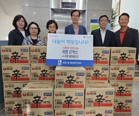[제주교통복지신문 김강석 기자] 수원새마을금고 조원점이 지난 3일 장안구 조원1동 행정복지센터를 찾아 어려운 이웃에게 전해달라며 라면 27상자를 기탁했다. 라면은 조원1동 관내 복지 대상자 가구 27곳에 전해질 예정이다.