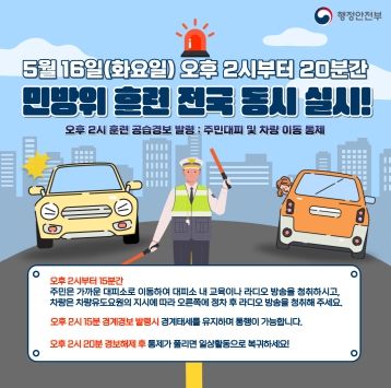 이때 운행 중인 차량은 군 작전차량, 응급구조 차량 등의 비상차로 확보를 위해 도로 갓길에 정차 후 차내에서 안전 안내 라디오(FM90.5MHz)를 통해 훈련 상황을 청취해야 한다.