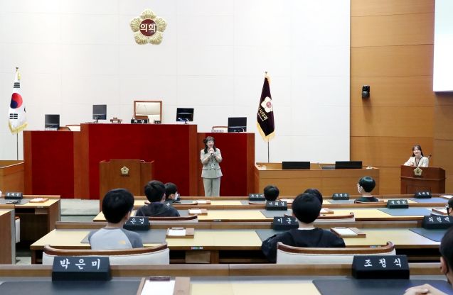 학생들은 성남시의회 홍보관을 관람하면서 시의회의 역할과 기능, 시의원이 하는 일에 대하여 견학진행자의 설명을 들었다. 이어서 방문한 본회의장에서는 회의가 진행되는 과정에 관한 영상을 시청한 후 발언대와 의원석 등의 주요 시설물에 대해 배우고 실제 회의 상황을 체험했다.