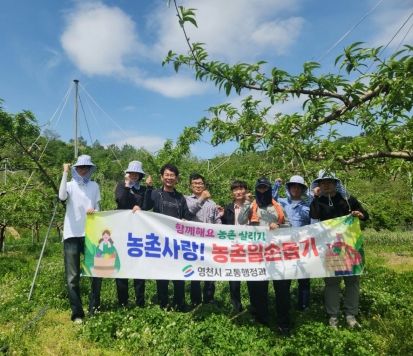 [제주교통복지신문 김강석 기자] 영천시 교통행정과는 4일 직원 일동과 함께 본격적인 영농철이 시작돼 인력수급에 어려움을 겪고 있는 서부동 복숭아 농가를 찾아 일손돕기에 나섰다.