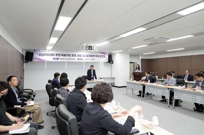 신상진 성남시장은 4일 시청에서 열린 ‘성남아트센터 주변 특화거리 조성사업’ 실시설계용역 착수보고회에서 “계획단계부터 주민들의 의견을 적극적으로 수렴하고 예술성을 가미한 특색있는 계획을 도입하라”면서 “문화예술자치도시라는 이름에 걸맞게 시민들이 즐겨 찾는 열린 문화예술공간으로 재창조될 수 있도록 사업을 추진하라”고 지시했다.