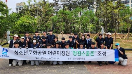 수원농생명과학고 생물자원과학과 조경 전공 학생 23명은 4일 3개 팀으로 나눠 청소년문화공원 중앙광장 주변에 팀별로 6.25㎡ 규모로 정원스쿨존 3개를 조성했다.