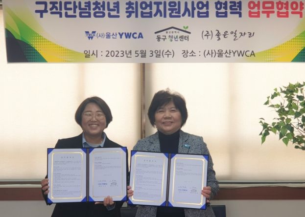 [제주교통복지신문 김강석 기자] 울산 동구청년센터는 (사)울산YWCA(회장 김덕순)와 지난 5월 3일 오전 10시 (사)울산YWCA 사무실에서 ‘구직단념청년 취업지원사업’ 추진을 위한 업무 협약을 체결했다.