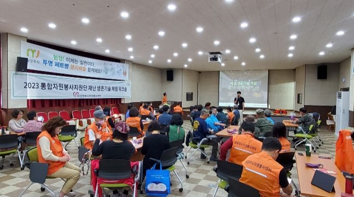 [제주교통복지신문 김강석 기자] 남양주시자원봉사센터(이사장 주광덕)는 지난 5월 3일 통합자원봉사지원단 구성원 50여 명이 참석한 가운데 센터 4층 대강당에서 “재난 생존기술 체험 워크숍”을 진행했다.
