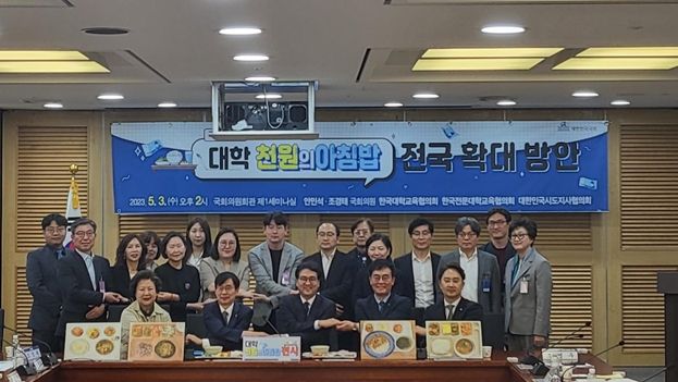 작년 국정감사에서 ‘천원의아침밥’사업 확대를 위해 적극 나섰던 더불어민주당 안민석 의원(경기 오산), 국민의힘 조경태 의원(부산 사하을)과 한국대학교육협의회, 한국전문대학교육협의회, 대한민국시도지사협의회가 공동으로 주최했다.