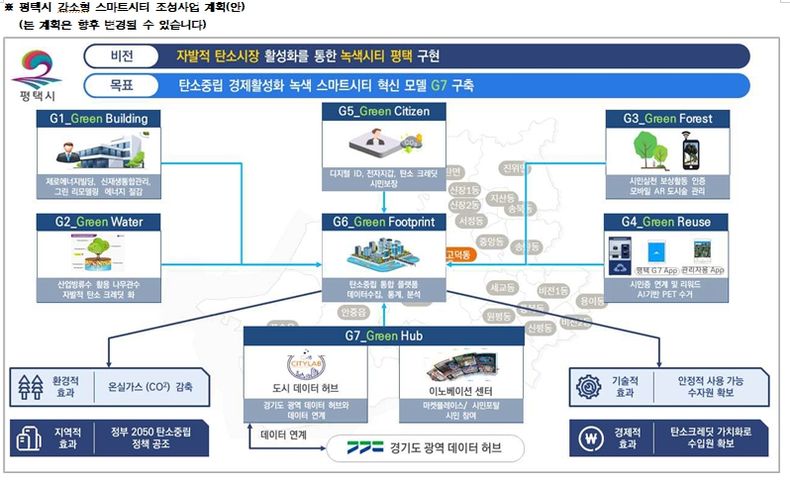 평택시는 급속한 인구 증가에 따른 환경오염과 탄소 배출량 증대에 대응하여 시민의 참여를 이끌어 낼 자발적 탄소시장을 구성해 평택에 녹색 스마트시티를 구축할 필요가 있다고 강조했다.