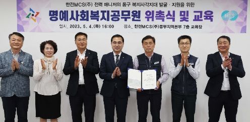 이날 위촉식에는 박희조 동구청장을 비롯해 한전MCS㈜ 관계자와 전력 매니저 등 45명 이 참석한 가운데 위촉장 수여와 명예사회복지공무원 교육이 진행됐다.