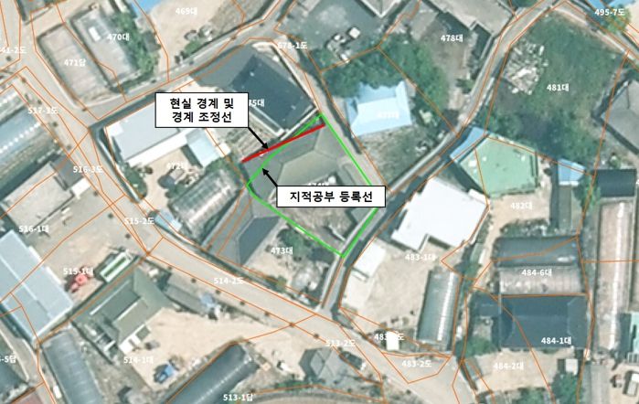 ‘불규칙한 형태의 토지 경계 조정 시범사업’은 불규칙하게 등록된 지적도 경계선이 현실 경계와 일치하지 않아 경계 분쟁의 씨앗이 되고 있어 이를 토지 소유자 동의를 얻어 간편한 절차에 따라 정리하는 사업이다.
