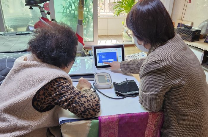 비대면 건강관리 서비스에 익숙지 않은 어르신을 위해 대면 서비스도 병행한다.