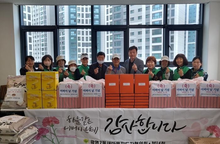 [제주교통복지신문 김강석 기자] 광명시 광명7동 새마을부녀회·지도자협의회는 제51회 어버이날을 맞아 지난 4일 홀몸 어르신 등 120여 가구에 우산, 수건 등 선물 세트를, 관내 경로당 9개소에는 쌀과 커피를 전달했다.