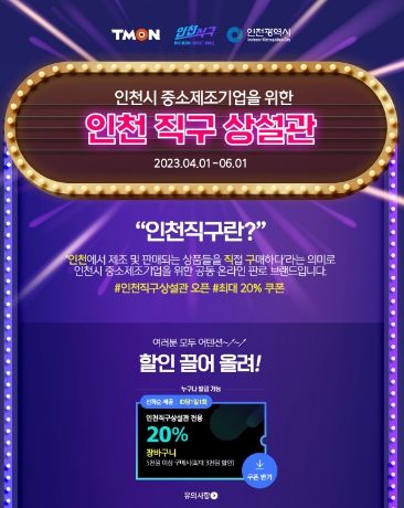 한편, 인천직구는 티몬을 비롯해 11번가, 롯데온 등 대형 오픈 마켓 3곳에 온라인상설관을 운영하고 있다.