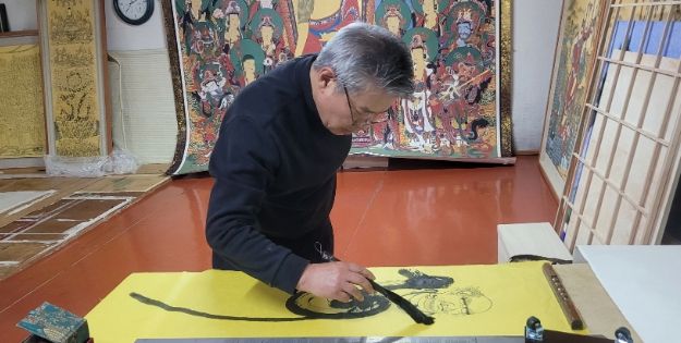 [제주교통복지신문 김강석 기자] 지난 5일 관음불교미술원(문경읍 소재)에서 경상북도 무형문화재 김종섭 불화장의 공개행사가 성황리에 진행됐다. 이번 공개행사는 탱화 등 각종 불화가 전시되면서 김종섭 보유자가 직접 전통 불화를 그리는 시연을 보였고 방문객들을 대상으로 달마, 연꽃 그리기 등의 체험행사도 진행하여 불화라는 일반인들에겐 다소 낯선 분야의 예술을 알리는 데에 기여했다.