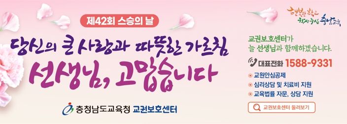 [제주교통복지신문 김강석 기자] 충남교육청은 42회 스승의 날을 맞아 오는 26일까지 도내 모든 학교에서 ‘교육활동 보호 주간’을 운영한다.