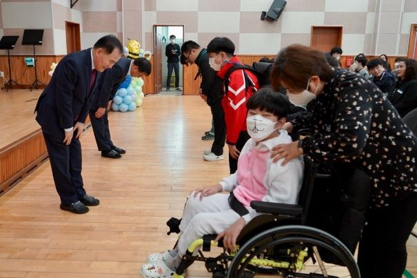 충남도의회 교육위원회 위원장인 편삼범 의원의 적극적인 건의로 도내 특수학교 863명의 학생이 장애인휠체어전용가방을 지원받게 됐다. 이에 지난 4월 17일 보령정심학교 ‘꿈 주간 문화축제 개회식’에서 김지철 교육감, 정수영 교장, 교직원, 학생·학부모, 지역주민 등이 참여한 가운데 장애인휠체어전용가방 전달식을 열었다.