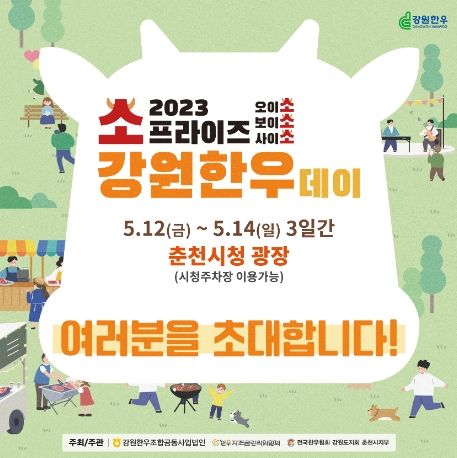 춘천시에 따르면 12일부터 14일까지 3일간 시청 앞 광장에서 ‘강원 한우데이’ 행사가 열린다.