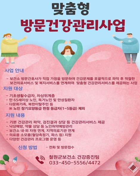 사업 신청과 관련한 자세한 사항은 철원군 보건소 건강증진팀으로 문의하면 된다.