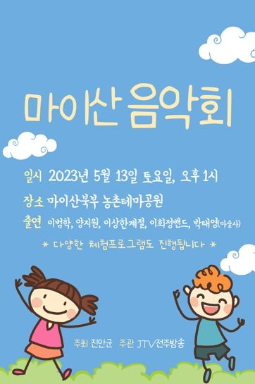 [제주교통복지신문 김강석 기자] 진안군은 오는 13일 오후 1시부터 마이산 북부 농촌테마공원 일원에서 ‘마이산 음악회’ 행사를 추진한다고 밝혔다.