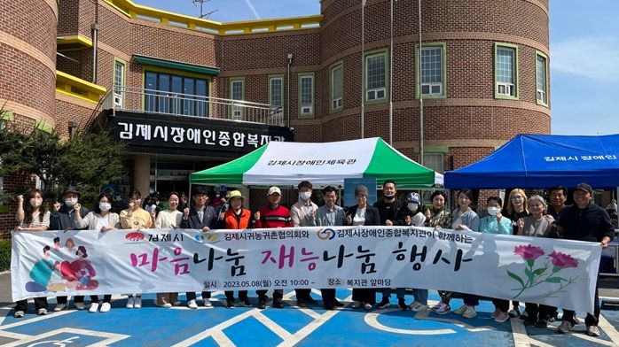 [제주교통복지신문 김강석 기자] 5월 가정의 달을 맞이하여 8일 김제시장애인종합복지관과 김제시귀농귀촌협의회가 복지관 앞마당에서 이용자 100명을 대상으로 마음나눔 재능나눔 행사를 진행했다.