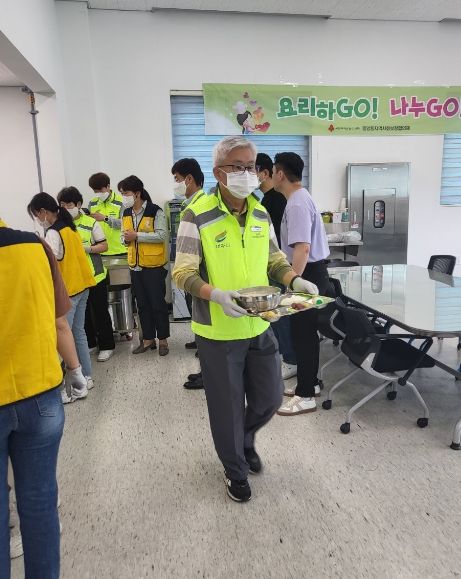 이번에 열린 ‘요리하GO! 나누GO!’는 가정의 달을 맞아 중앙동 지역사회보장협의체에서 식사하러 오신 어르신들께 카네이션을 선물해 드렸다. 공공위원장인 정이화 중앙동장과 민간위원장 한병주 위원장이 식당 입구에서 어르신들 한 분, 한 분께 카네이션을 달아드렸다.