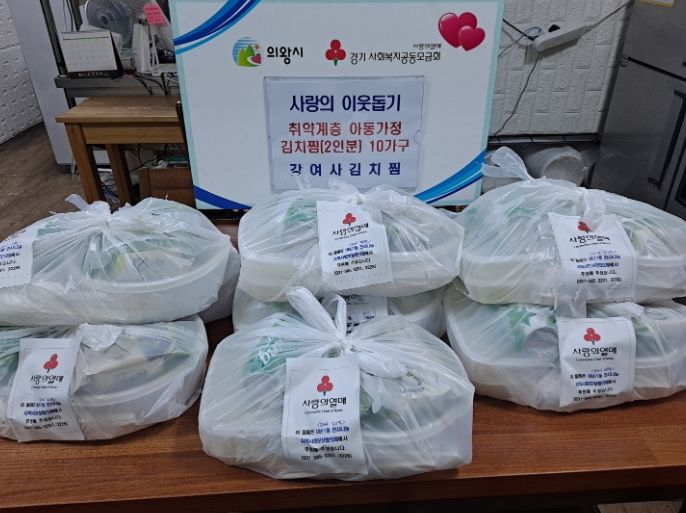 [제주교통복지신문 김강석 기자] 의왕시 내손1동주민센터는 ‘강여사 김치찜’(안양시 평촌동(두산벤처다임))에서 김치찜 20인분을 전달했다고 밝혔다. 작년에 이어 두 번째 후원이다.