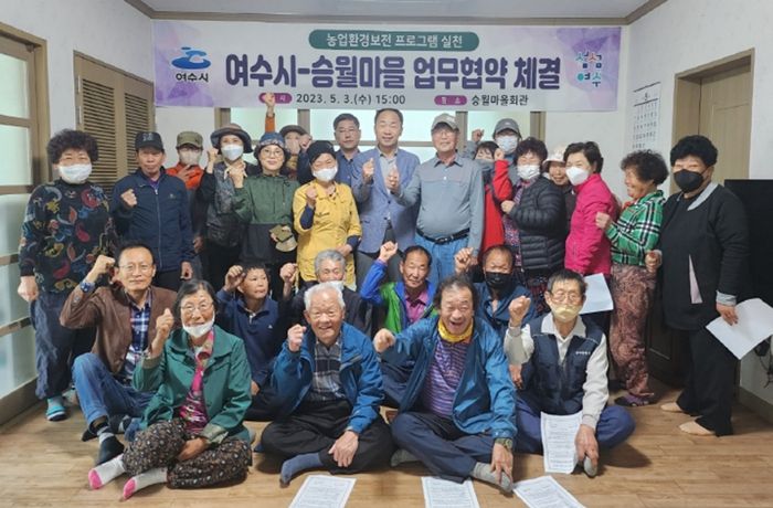 [제주교통복지신문 김강석 기자] 여수시가 지난 3일 승월마을회관에서 승월마을과 ‘농업환경보전 프로그램 실천’ 협약을 체결했다.
