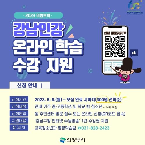 [제주교통복지신문 김강석 기자] 의정부시는 관내 중·고등학생과 학교 밖 청소년 300명을 대상으로 ‘온라인 학습 수강권’을 지원한다.