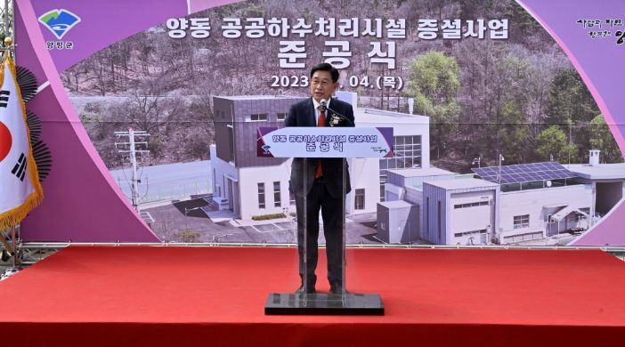 양동 공공하수처리시설 증설사업은 국비 81억원을 포함한 보조금 120억원과 군비 23억원 등 총 143억원의 예산이 투입된 사업으로, 이번 준공을 통해 기존 500㎥/일에서 1,200㎥/일의 하수처리용량을 확보하면서 원활한 하수처리가 가능해졌다.