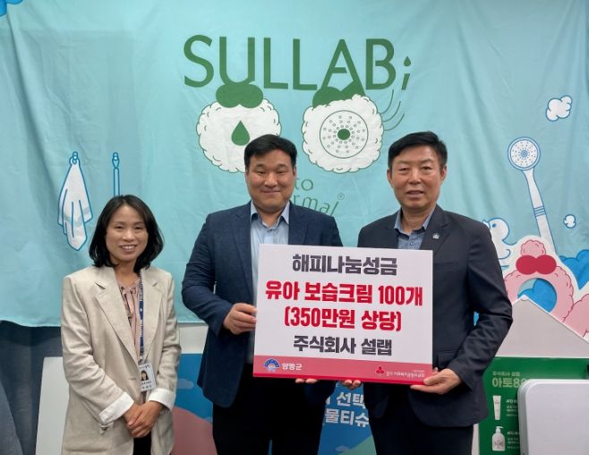 [제주교통복지신문 김강석 기자] 주식회사 설랩은 8일, 어린이날을 기념해 양평군에 아토808 유아 보습크림 100개(350만원 상당)를 기탁했다.