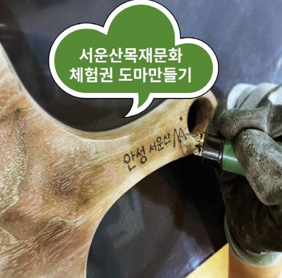 [제주교통복지신문 김강석 기자] 안성시가 고향사랑기부제 답례품 중 서운산 목재문화체험장에서 도마를 만들 수 있는 체험권을 제공한다.