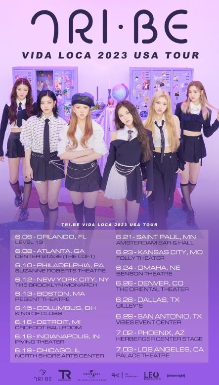 소속사 티알엔터테인먼트는 오는 6월과 7월 트라이비의 ‘TRI.BE VIDA LOCA 2023 USA TOUR(트라이비 비다 로카 2023 USA 투어)’ 개최 소식을 알리며 포스터를 공개했다.
